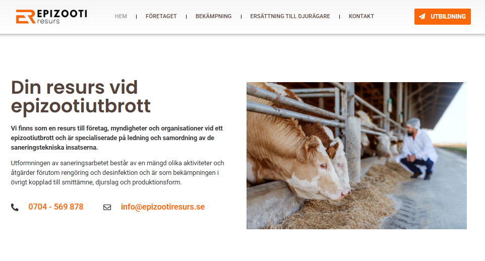 Vi har tagit fram webbplatsen för utbildningen Sanering vid utbrott av allvarliga djursjukdomar. Kursen ger deltagarna en praktisk helhetsförståelse för saneringsarbetet vid epizootiutbrott – från roller och ansvar till metoder, miljöhantering och samverkan mellan olika aktörer.